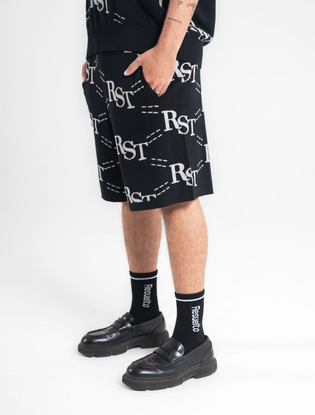 Cuenta con un rapport de logos tejidos en jacquard a sobre tono ocupando toda la prenda. Cordones color a tono.