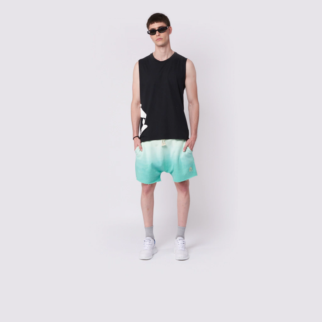 Bermuda de Jogger confeccionada en un Rústico muy confortable y suave al uso. Para darle su plus, esta prenda cuenta con un proceso de degradé a tono. Tiene sus cordones color crudo, que hacen juego con la parte mas clara del degradé, y asi mismo su bordado del isologo en una de las piernas, de ese mismo color.