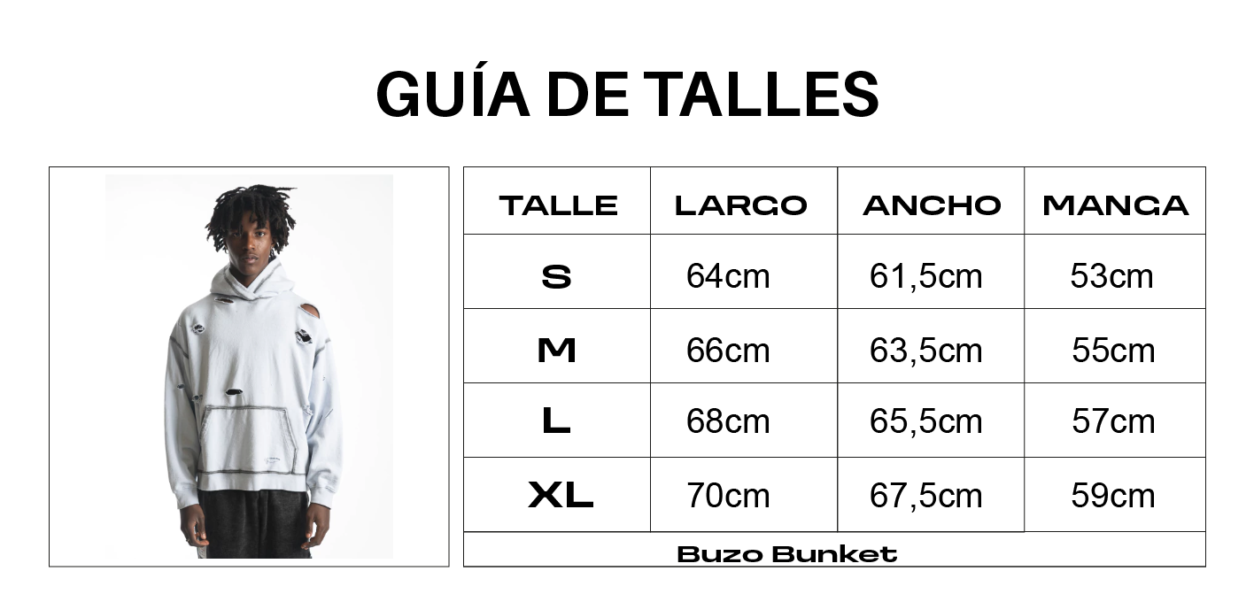 Buzo estilo hoodie confeccionado en un Rustico liviano, perfecto para el inicio de la temporada Primavera Verano. Este artículo lleva dos procesos de lavado; primero, un proceso de teñido el cual es seguido de un localizado negro que recorre las uniones de confección, y segundo, unas roturas hechas en sectores especificos de la prenda realizadas con quemadura laser.
