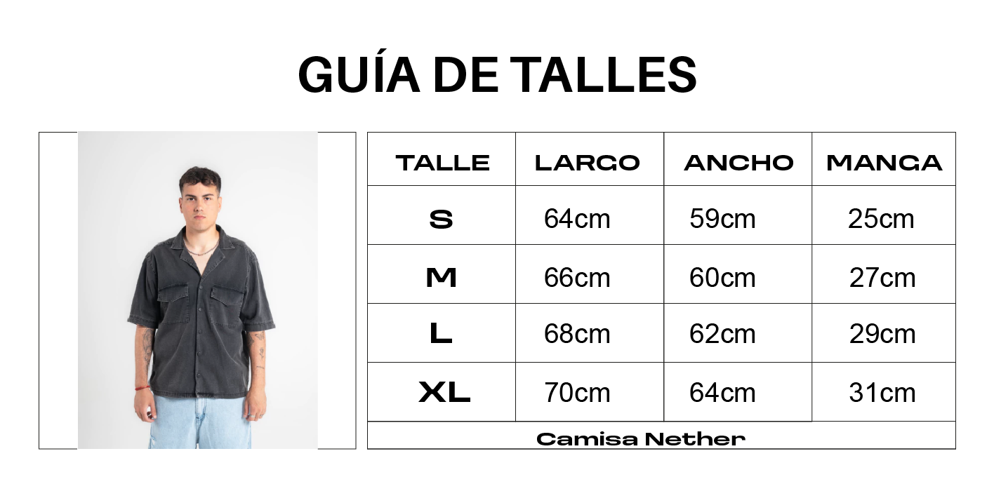Camisa de Jean manga corta, oversize, confeccionada en denim negro; sus procesos logran un efecto de desgastado. Para completar el diseño y ser fieles a nuestro estilo realizamos un aplique con nuestro logo en la espalda. Detalle de confección: botones de nylon negros.