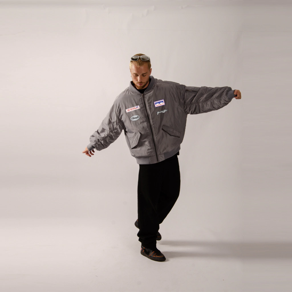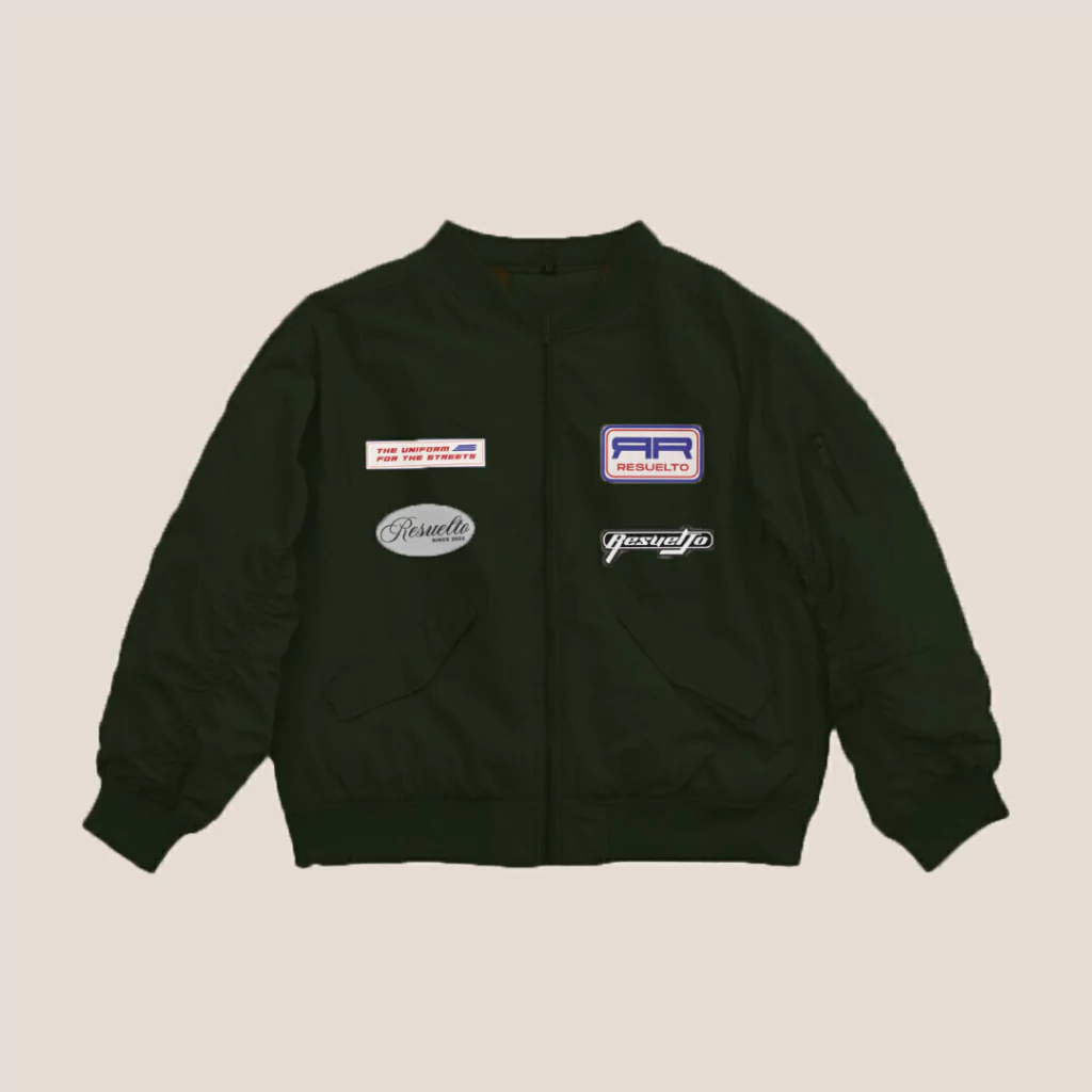 Campera estilo bomber de calce Oversize disponible en 3 variantes de color: negro, verde militar y gris. El diseño se puede apreciar como algo distinto y único para esta temporada; con unos parches bordados en el frente, cada uno con su propia impronta. Confeccionada con puños tejidos a tono y cierre al frente. Su relleno acolchonado brinda mucho abrigo y estructura.