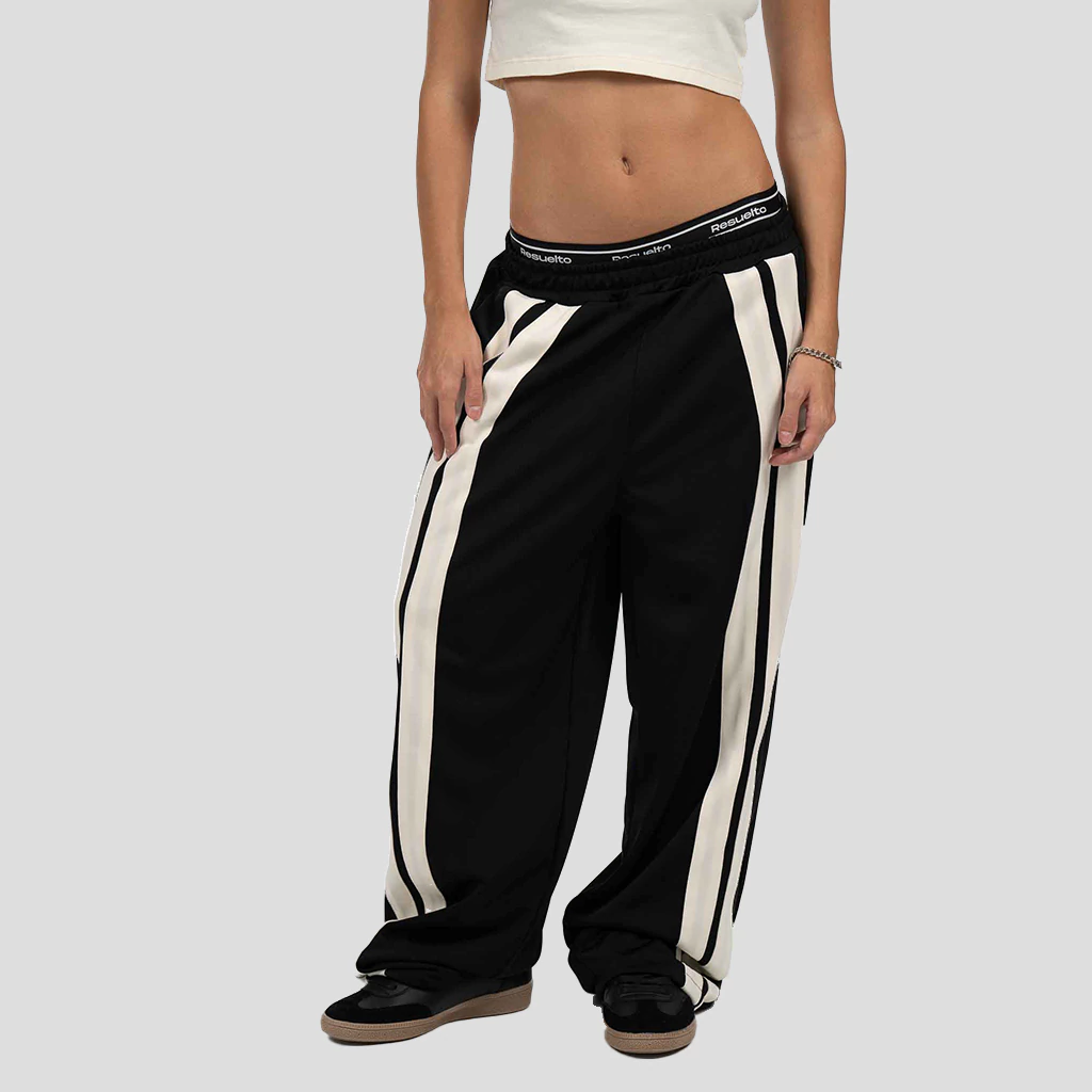 Les presentamos nuestro Jogger Jorter color negro; nuestro jogger deportivo exclusivo de la colección FW25 está confeccionado en ketten con cinta tejida en blanco en sus frentes, a lo largo de todo el pantalón.