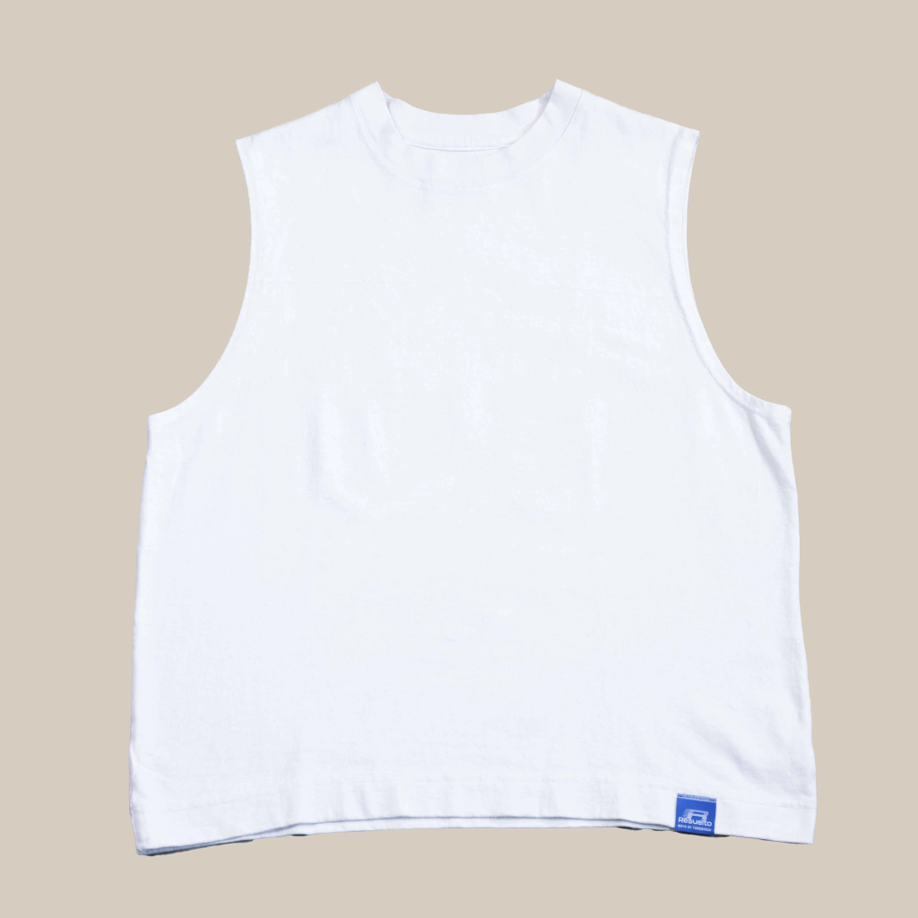 Musculosa blanca lisa de calce oversize, llegando la parte superior hasta el largo de hombros. Confeccionada en un Jersey 16/1, lo cual le da mas estructura y peso a la prenda. Cuenta con nuestro bordado del logo institucional en la parte superior de la espalda y etiqueta clip color azul en el inferior del frente, siendo esta una de las nuevas etiquetas diseñadas para la colección SS25.
