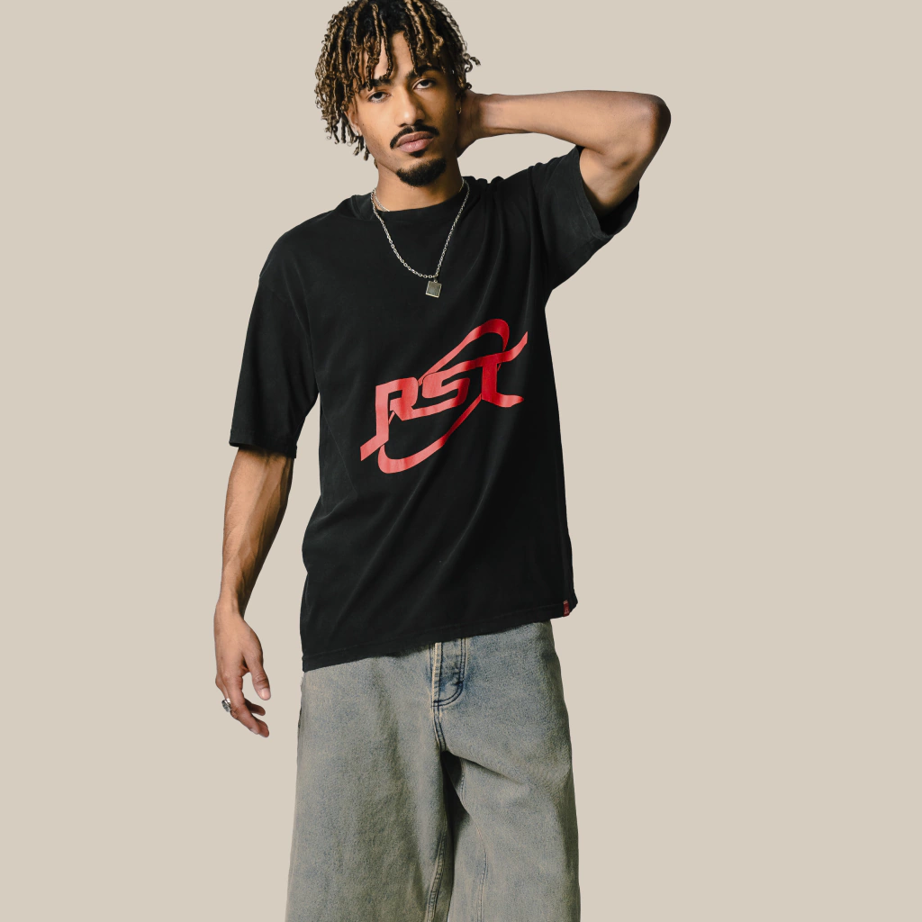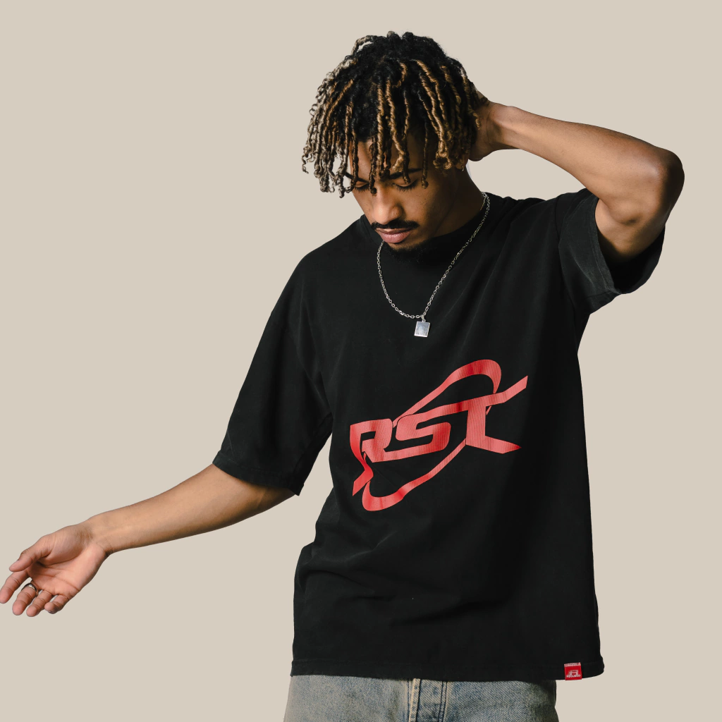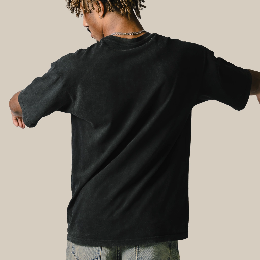 Remera negra confeccionada en un Jersey 24/1 de mucha calidad, dándole estructura a la prenda. Cuenta con su estampa protagonista en el frente y etiqueta clip en la parte inferior del mismo color que su estampa.
