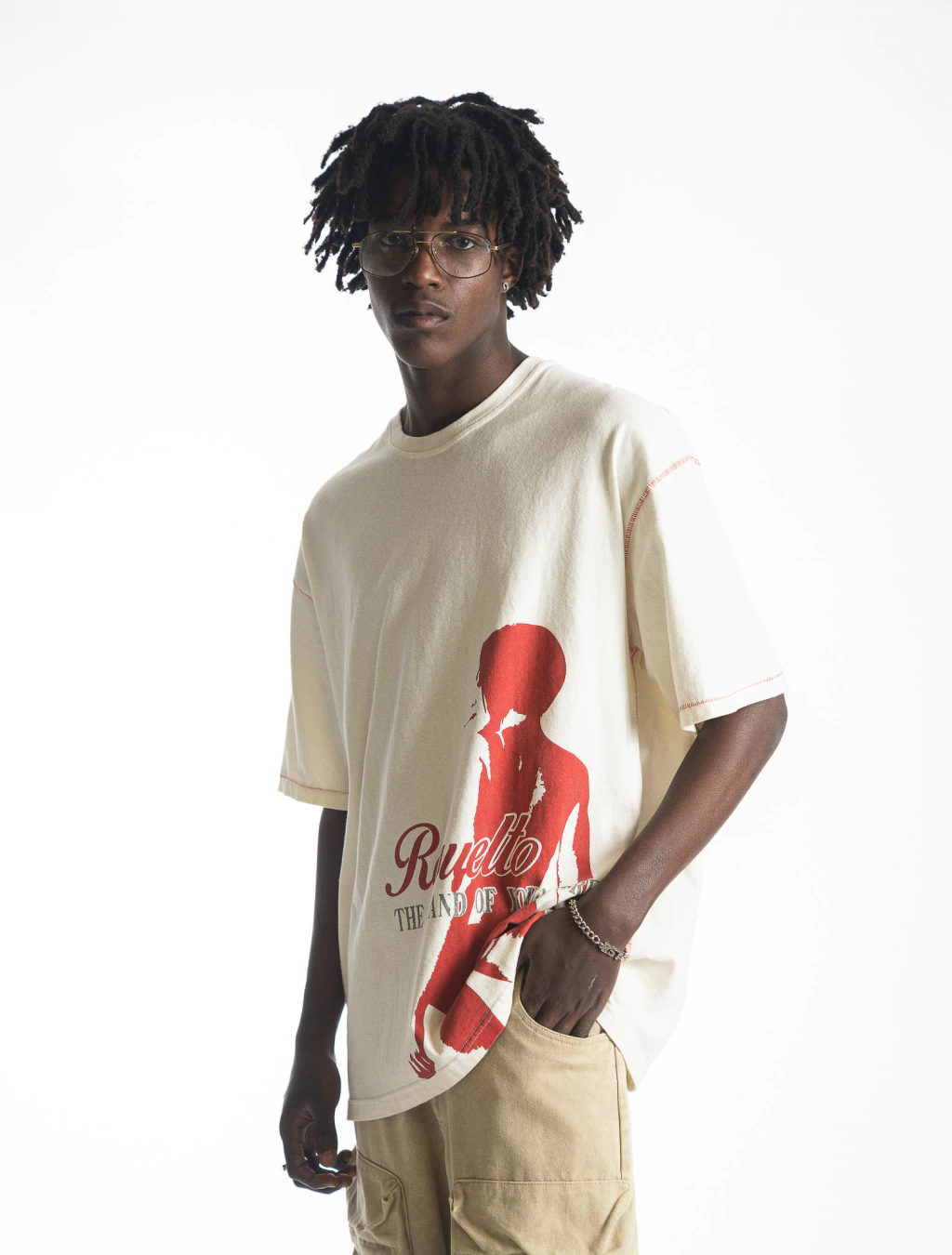 Remera manga corta confeccionada con un Jersey 24/1 esmerilado, que tiene una sensacion al tacto muy suave. Saliendo de lo tradicional, decidimos confeccionarla con costuras a la vista y a tono de la estampa. En su frente, cuenta con su estampa con un diseño color rojo, exclusiva para esta colección.