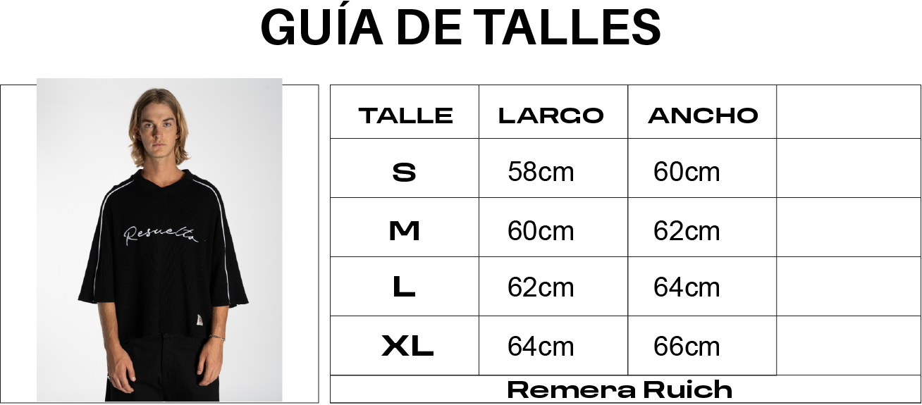 El modelo mide 1,88 mts y usa un talle L